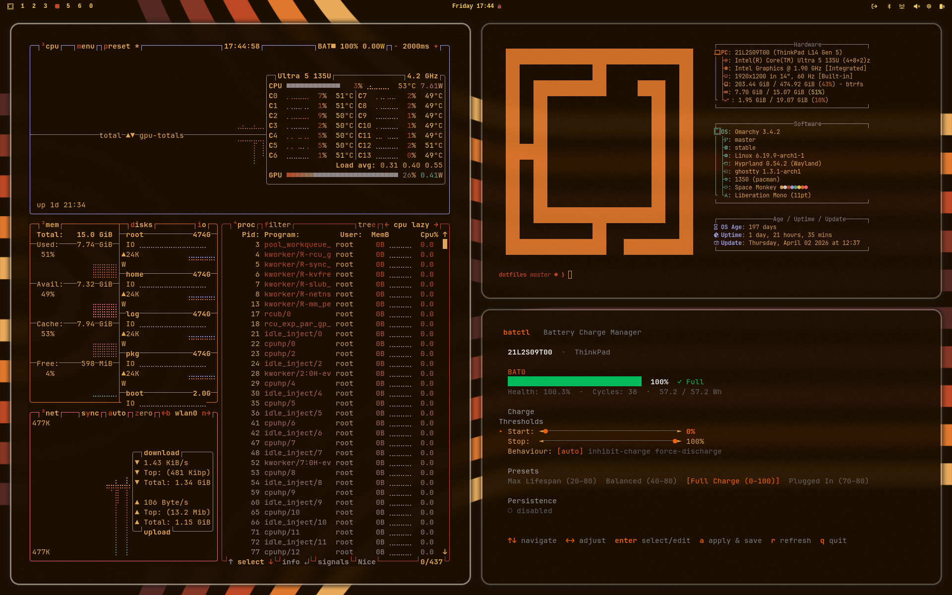 - Omarchy (Hyprland, hypridle, Waybar)